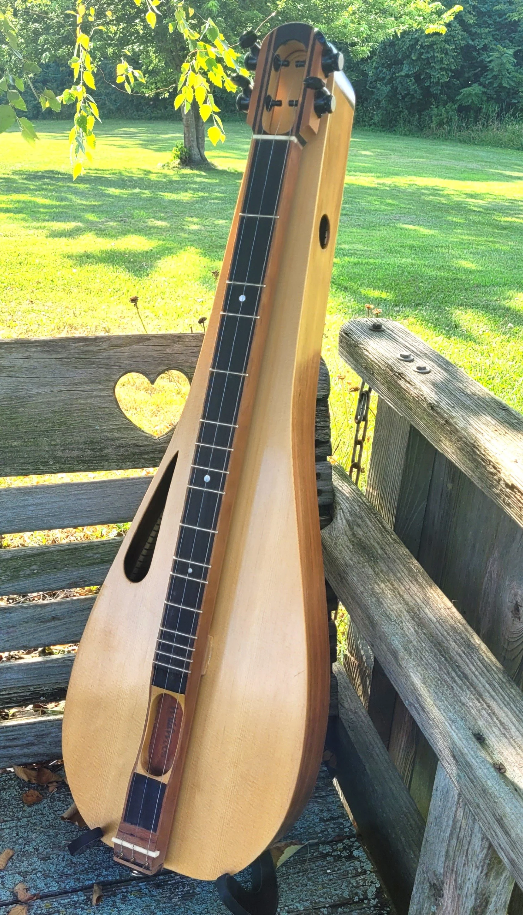 Introducing our original Fret Play Mountain Dulcimer! The soundboard is Sitka Spruce and the sides and back are Cherry. The fretboard is Cherry with a Wenge fingerboard. See wood options on our “shop” page.